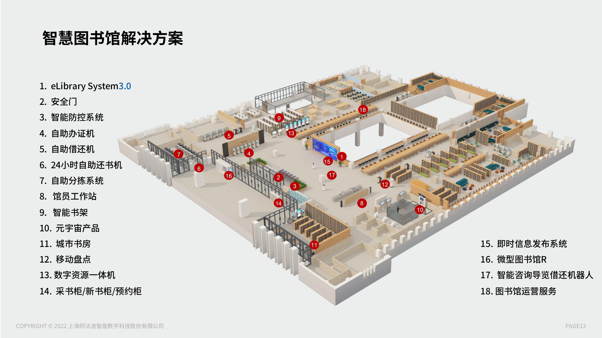 阿法迪智慧图书馆以智慧图书管理系统为业务支撑,各部分相互融合反馈,通过引进各类高效化、自助化的智能终端,并将反馈数据收集传送至智慧图书馆管理系统,进一步清洗、分析数据,并通过空间内的智能终端反馈于读者,使得图书馆真正成为物物互联的智慧化空间。