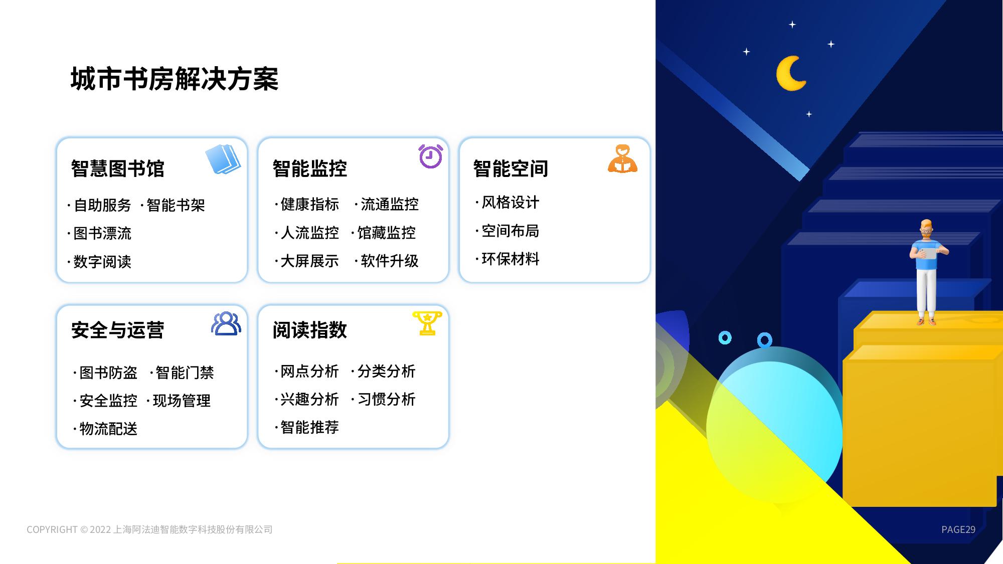 为贯彻国家文化发展总体要求,持续推进全民阅读,提升基层文化设施服务效能,解决城市公共文化建设“最后一公里”难题,实现城市公共文化服务品质化提升的文化工程,上海阿法迪为文化事业单位全心打造整体尊龙凯时平台入口的解决方案。方案集选址、设计、装修、系统建设、运营为一体,利用信息化和 rfid 技术,实现无人值守和读者自我管理服务的全开放、不打烊、高品位的24小时自助实体图书馆。